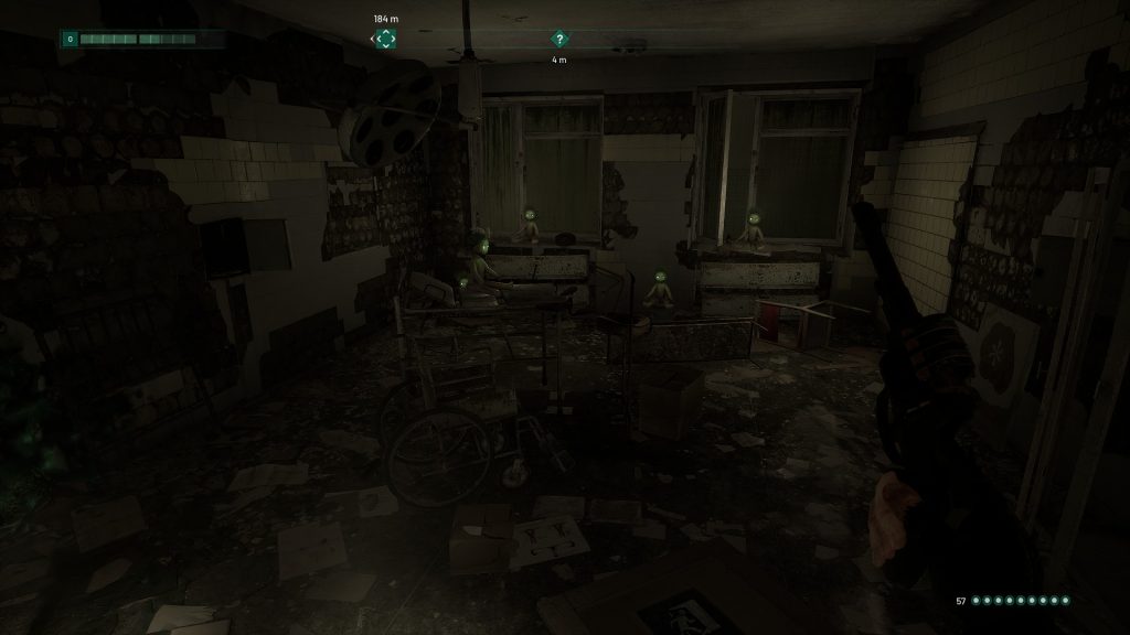 こういう人形が光っていたり、振り返ったら誰かいたみたいなダイレクトな演出もたまにある。陳腐なジャンプスケアを多用しているわけではないので、演出としてはバリエーションに富んでいると思う。いかにもなアイテムを取るとビックリみたいなものから、いきなりプロジェクターが点くとかの怪現象、全体としては予測できるものが多いのでショックは大きくないものの、数回はマジでびっくりした。