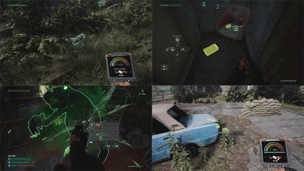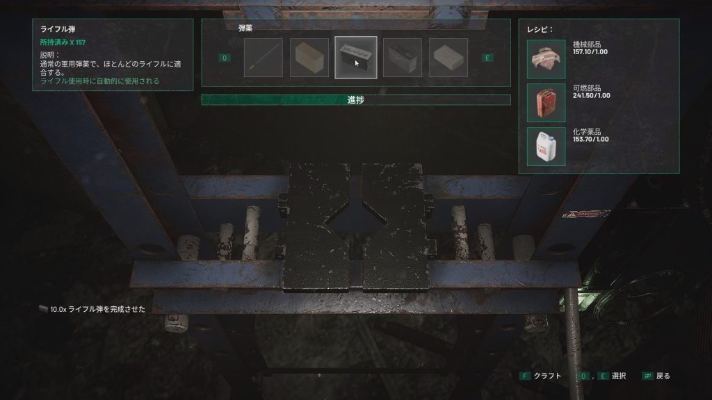 おそらく真ん中であろうミディアムだと素材もたくさん手に入るし、拠点がすぐにいい状態になってしまう。あまり不便すぎても問題だが、スムーズすぎるのも存在意義を問われてしまうことになる。よく使う武器の弾薬や、回復アイテムを量産しようとか言った場合に限り、一部の素材が足りなくなるかな程度なので、サバイバル感は薄い。逆に難易度を上げるとその辺にたくさん車があるのにパーツが全く手に入らないなどの融通の利かない状況になる。