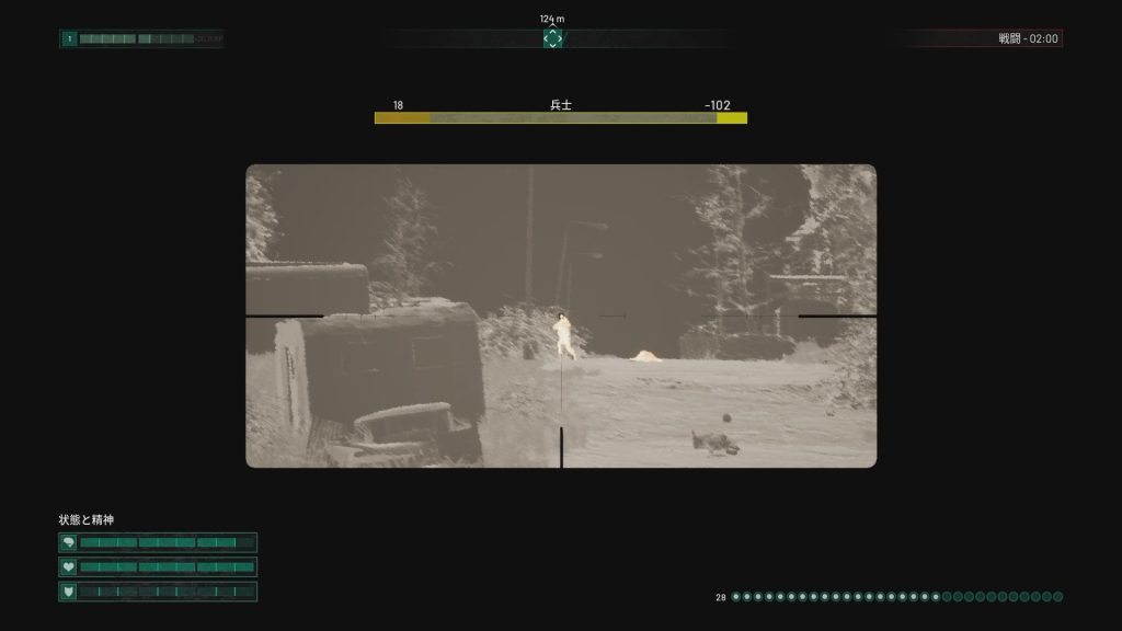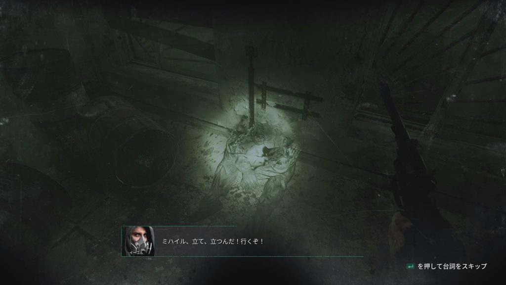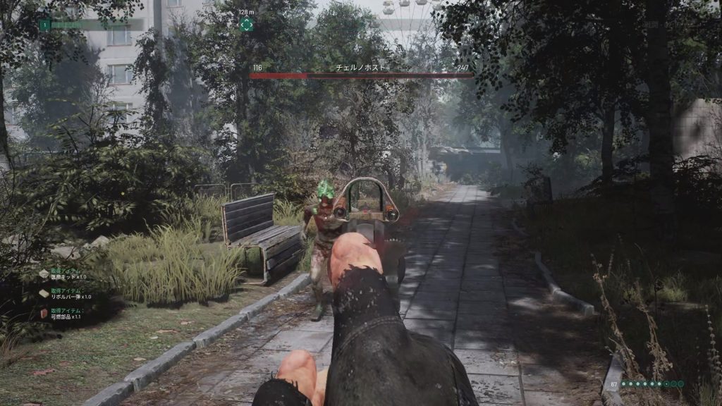 独特な点としては、イーゴルの設定上銃撃が下手だろうということなのか、サイトを覗いた状態(ADS)でないと発砲ができないということ。なので、倍率の高いサイトをつけた改造AK47などを所持しているときは、近距離用のリボルバーやショットガンを持つなどの対応が必要になる。リボルバーの威力は高く、初期から威力アップのパークを取得できるので、敵を視認しにくい距離でなければかなり強い武器になる。でも私はこういう遠距離からスコープでAK47を撃って押し通しました。