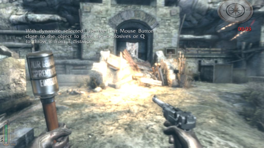 問題になるのはシャドウハンドのほうもそうで、浮かせる・よろめかせる・左右に吹っ飛ばすといった攻撃もなければ、連続攻撃でフィニッシュブローが出るわけでもない。概ねキックや武器攻撃、ピストルくらいの火力しかないように感じられるこの武器を主体にコンボをする、となると少々戦闘が味気ないというのは間違いない。せめてよろめき値のようなものがあれば、思い切り敵に飛び込んでいくスタイルでも問題なくプレイできるだろうし、ヘッドショットやいろんな武器を使う倒し方にもつなげられただろうに、実質的には選択が面倒くさいキックでしかない。というよりキックのほうがダウンさせやすいのでは?と思う使用感なのだが、主に使うときはWW1の人間かゾンビ相手という点を考慮に入れると、敵側の設定のほうに問題があるのかもしれない。