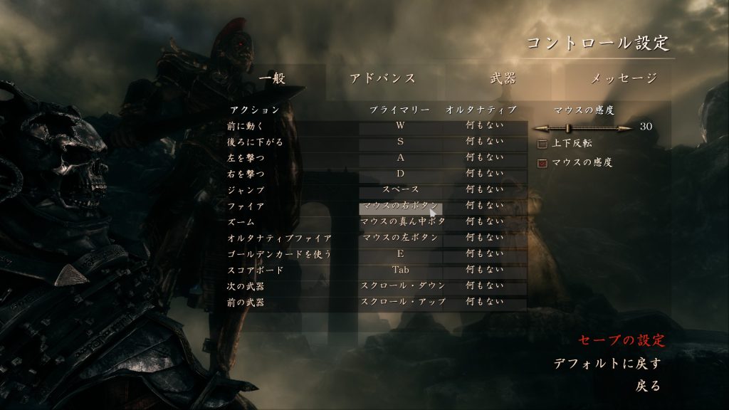 名前も出せない人の作業だから仕方ないが、オプションの1画面ですらなにこれである。左右を撃つんじゃなくて左右移動、武器発射も逆の気がする、マウスの感度設定内のマウスの感度チェックボックスの意味がわからない、セーブの設定じゃなくて設定の保存かなんかにしてくれ。音声がへっぽこな分には笑えるが、タロット解除のための条件とかこういう設定でおかしな翻訳をされるとプレイに支障が出る。「○○をしろ」が「(すべての)○○をしろ」なのがいくつかあったり、ちゃんと全てしろと書いてあったりするものが混在していて、正しい条件は翻訳版では開示されないので類推するしかない。なのでタロット獲得というモチベーションは低くなる。ここについては明確に問題点。
